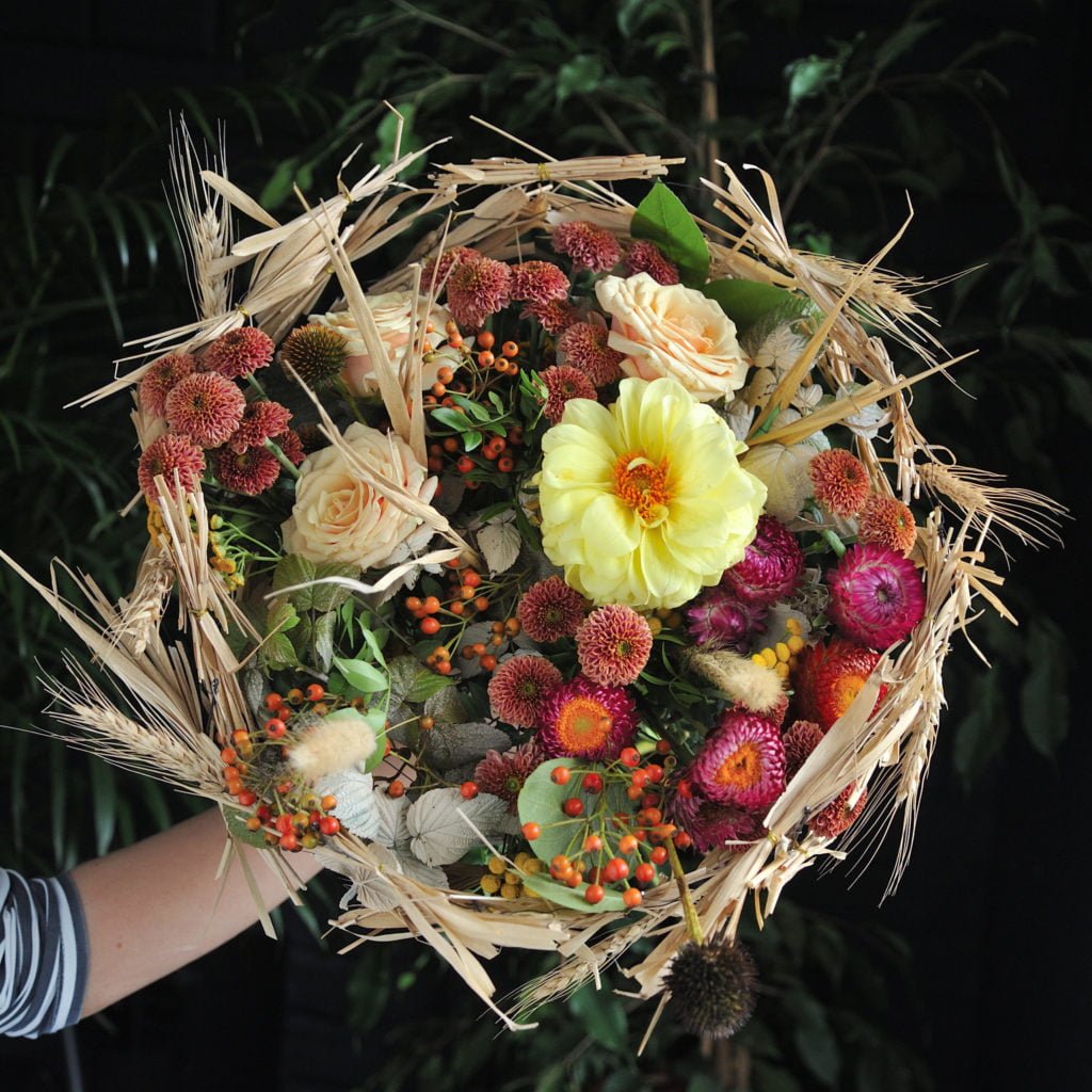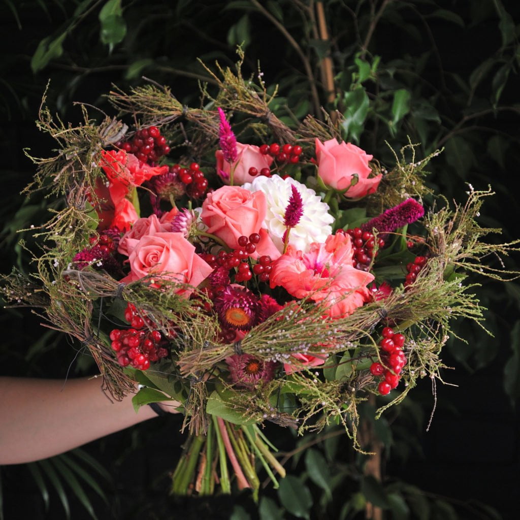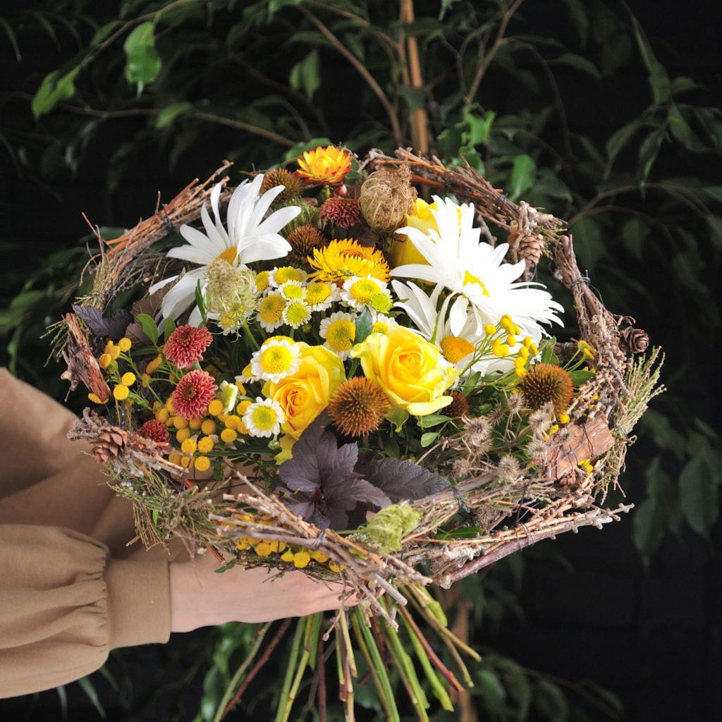 Каркасный букет созданный в рамках курс флористики “Профессия флорист”.