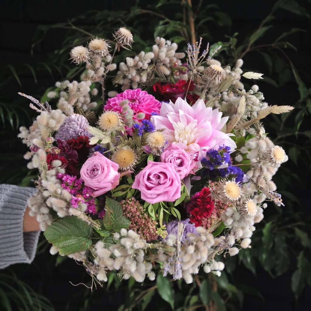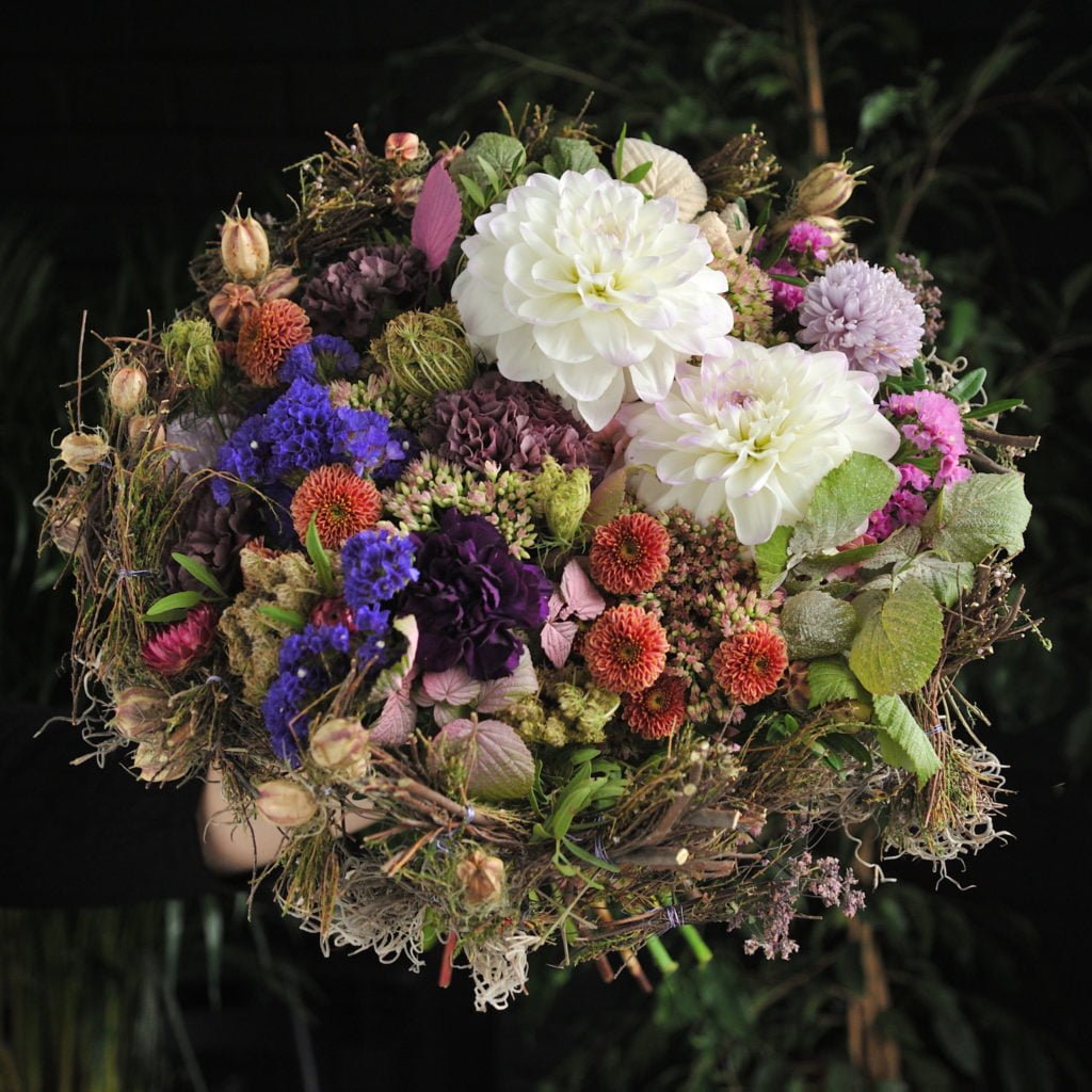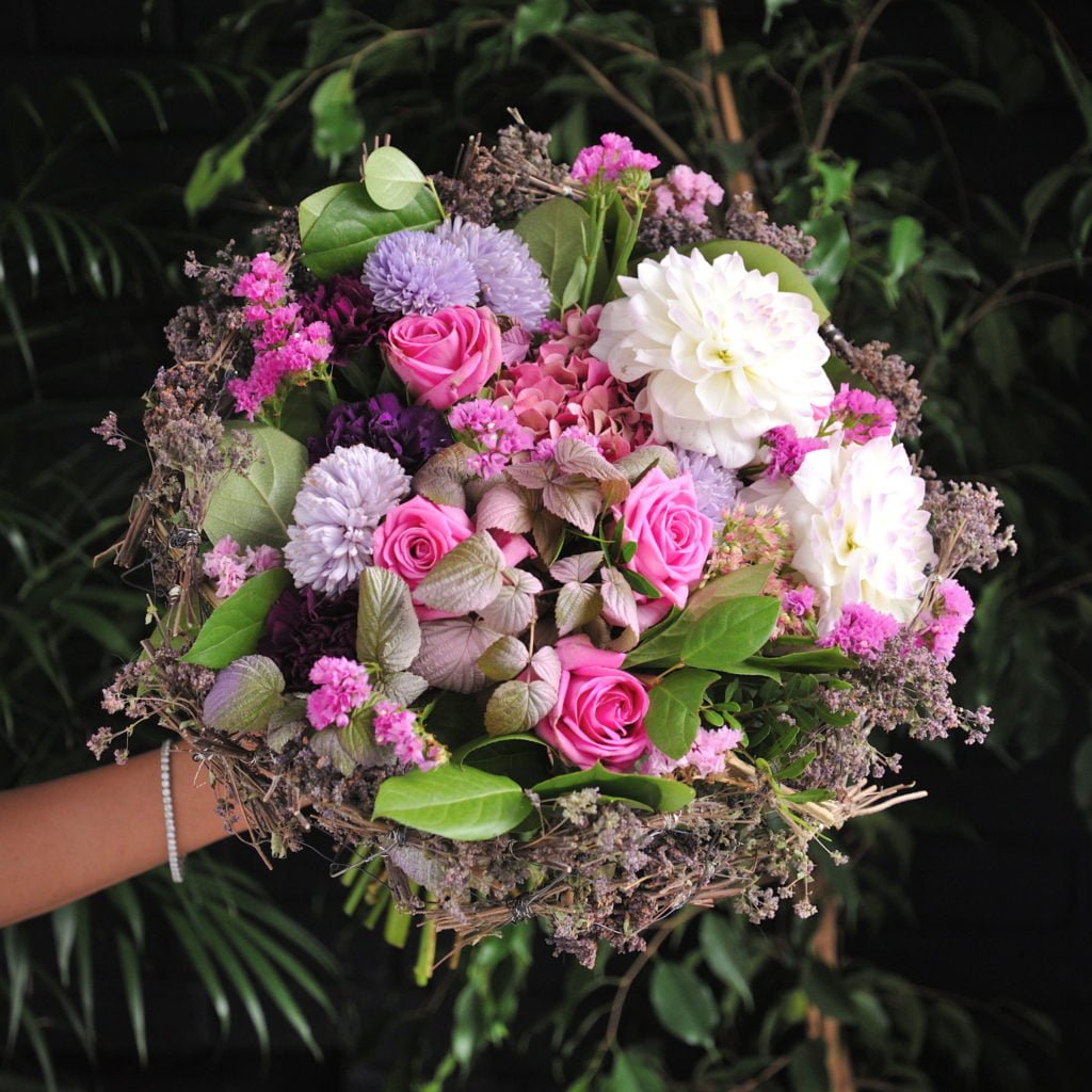 Каркасный букет созданный в рамках курс флористики “Профессия флорист”.