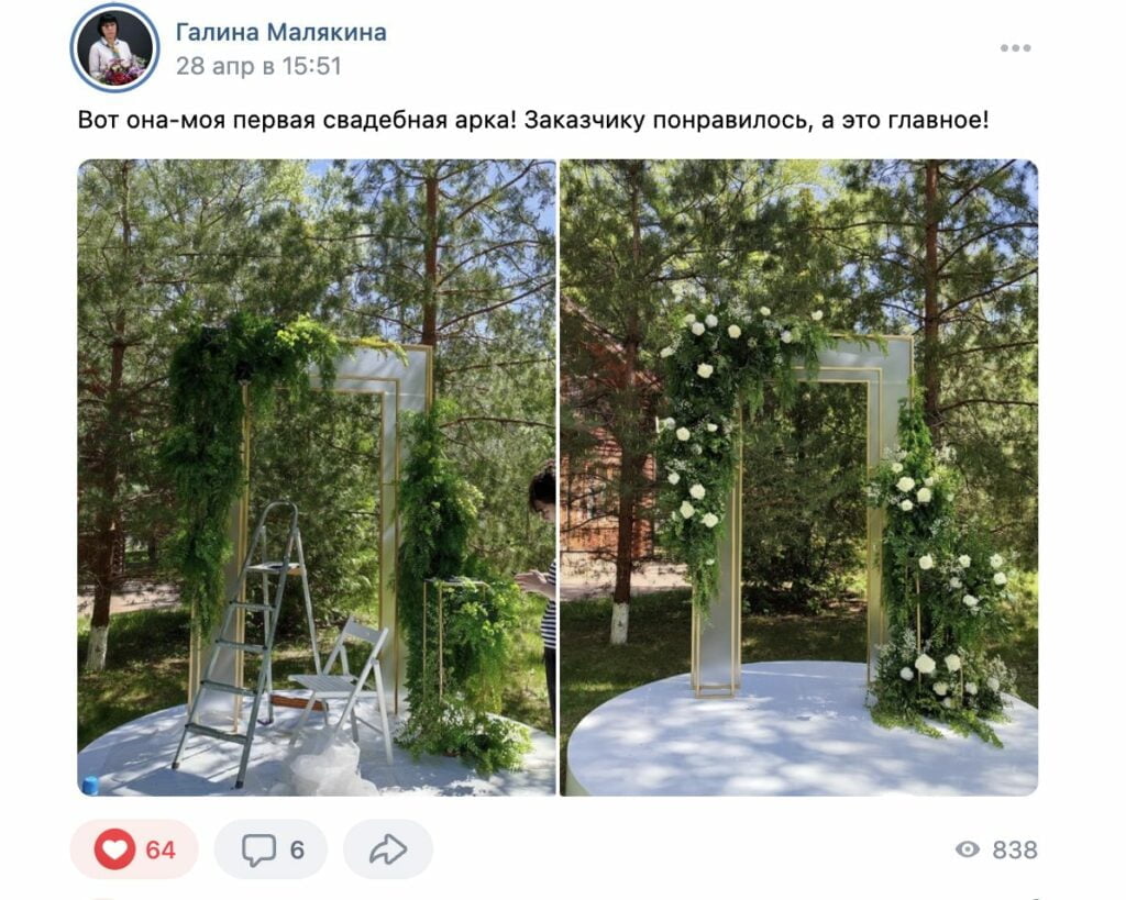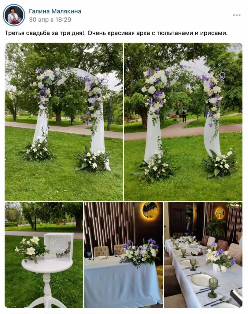 Уже в конце апреля меня пригласили оформлять свадьбу. Это был первый подобный заказ, но потом поступило ещё два подобных.