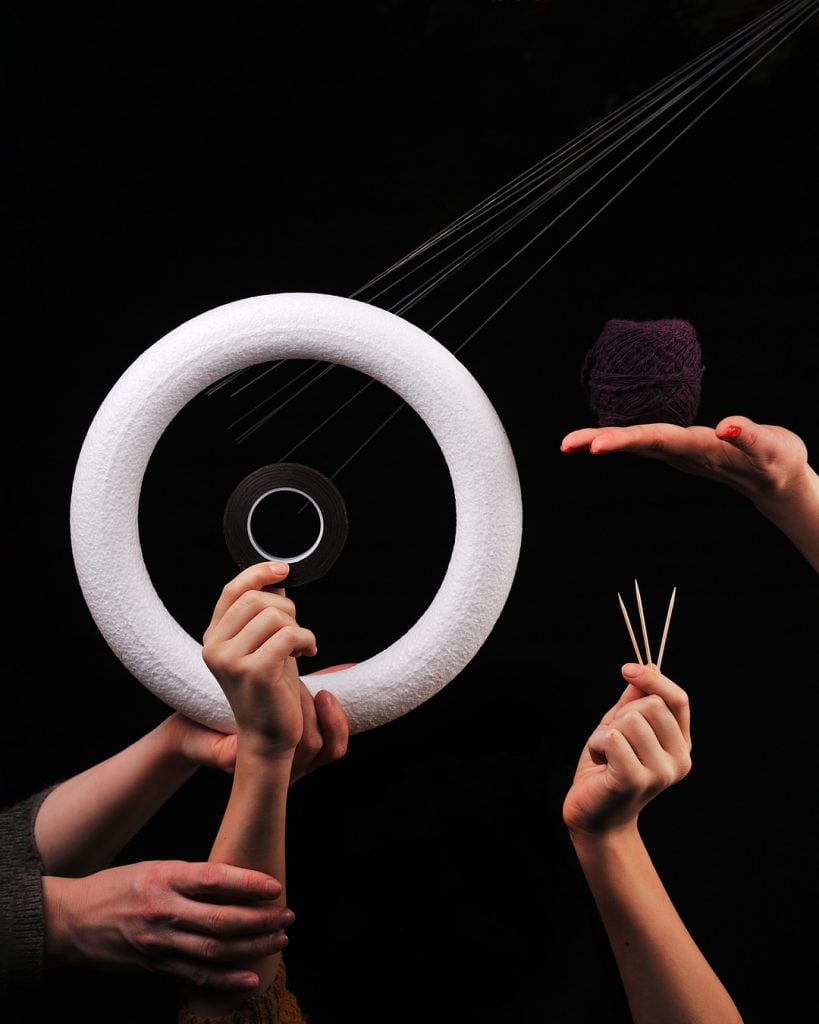 - Основа для венка из пенопласта (можно вырезать самому из пенополистирола)