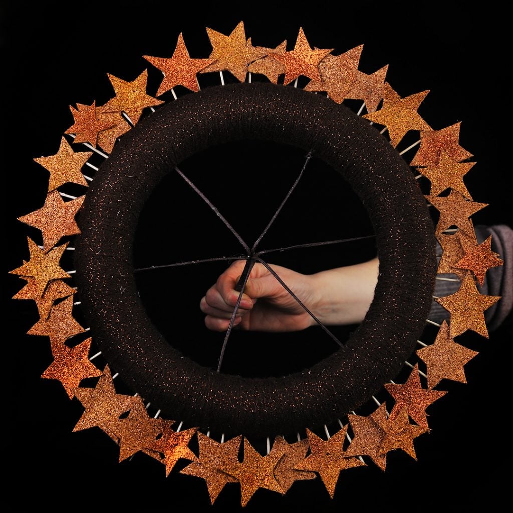 - Приклеиваем звезды на зубочистках сверху и снизу используя термоклей.